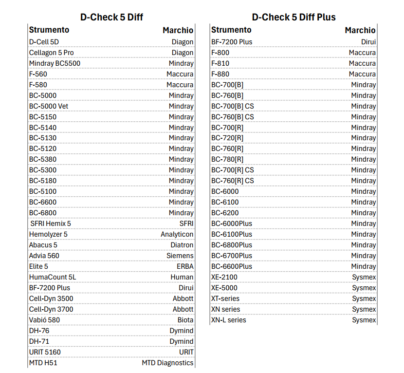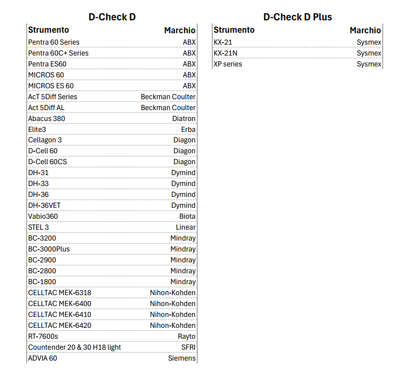 Qui di seguito l'elenco degli strumenti coperti dai controlli del sangue
